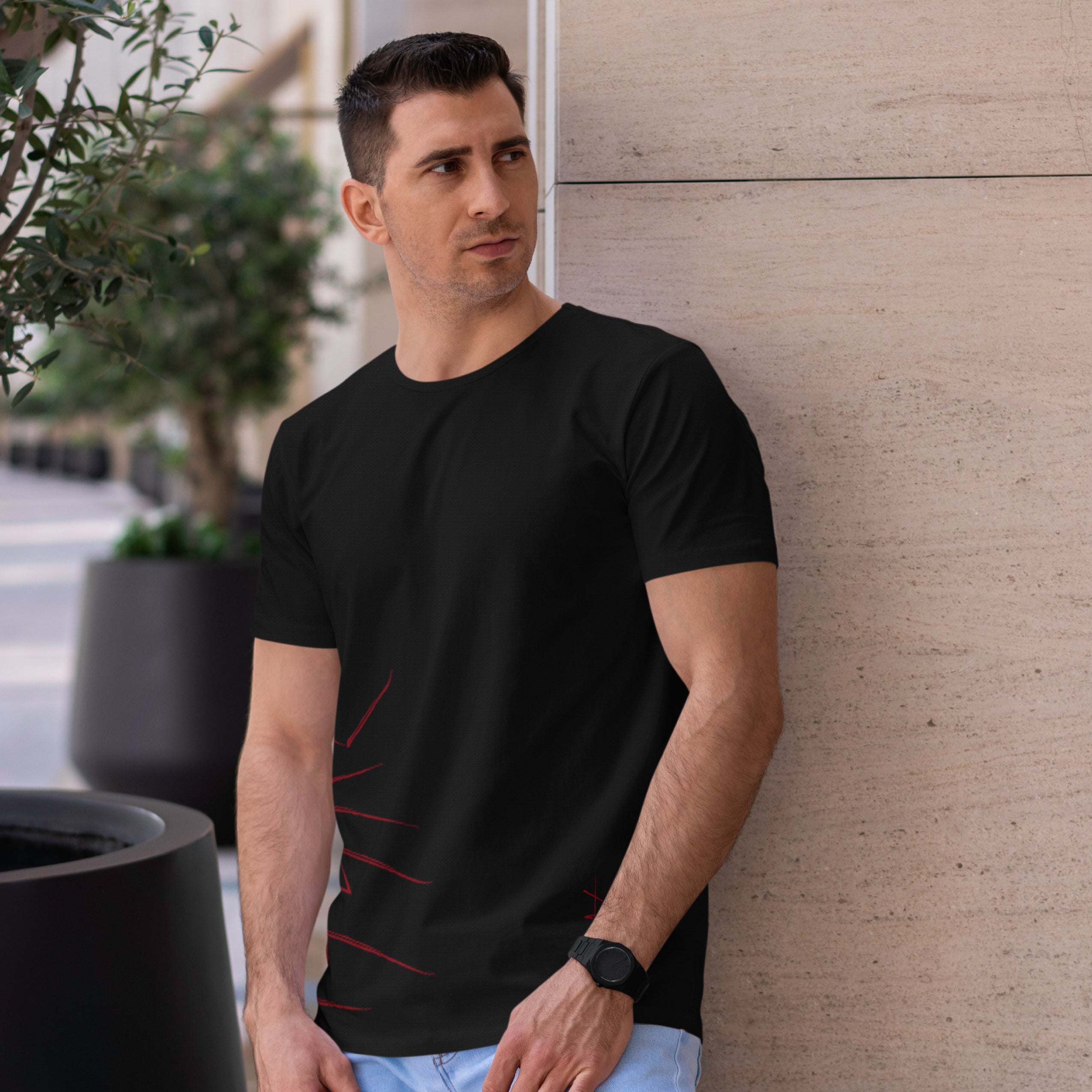 Graphic T-shirt featuring a side-placement print for an edgy, asymmetrical look.